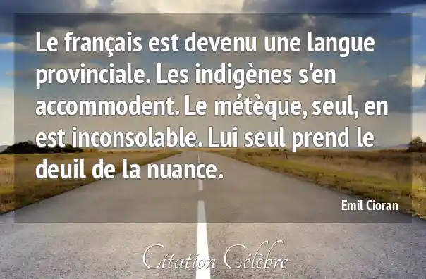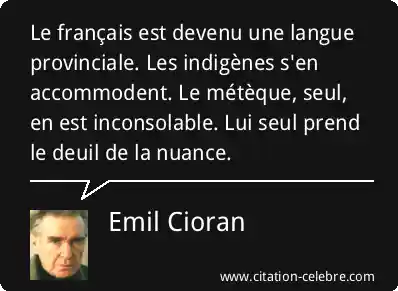 Le français est devenu une langue provinciale. Les indigènes s'en accommodent. Le métèque, seul, en est inconsolable. Lui seul prend le deuil de la nuance.