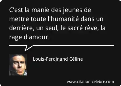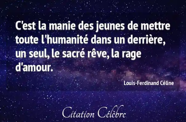 C'est la manie des jeunes de mettre toute l'humanité dans un derrière, un seul, le sacré rêve, la rage d'amour.