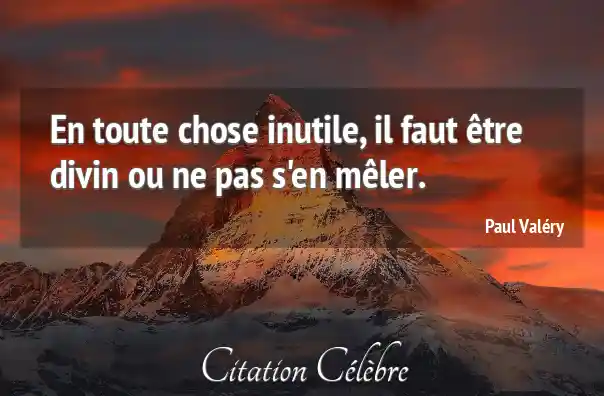 En toute chose inutile, il faut être divin ou ne pas s'en mêler.
