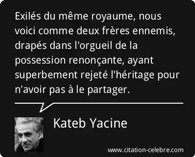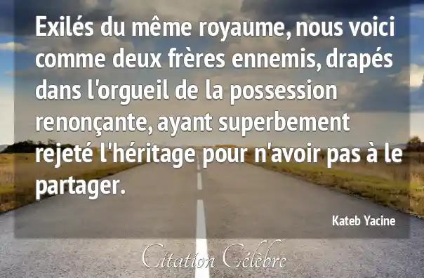 Exilés du même royaume, nous voici comme deux frères ennemis, drapés dans l'orgueil de la possession renonçante, ayant superbement rejeté l'héritage pour n'avoir pas à le partager.