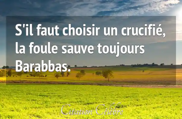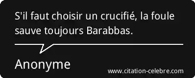Citation Anonyme choisir : S'il faut choisir un crucifié, la foule sauve toujours Barabbas....