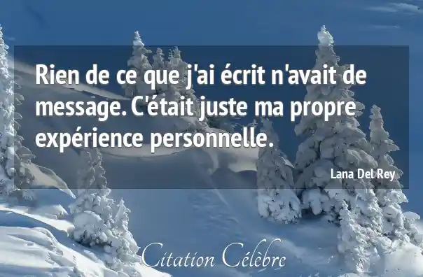Rien de ce que j'ai écrit n'avait de message. C'était juste ma propre expérience personnelle.