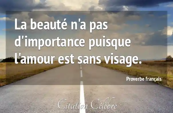 Proverbe  Français Amour : La beauté n'a pas d'importance puisque l'amour est sans visage....