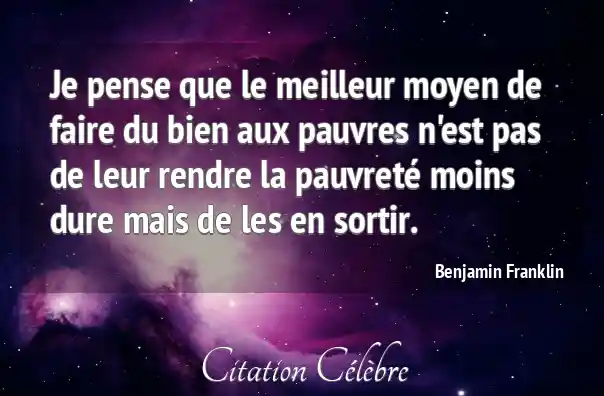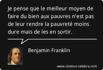 Je pense que le meilleur moyen de faire du bien aux pauvres n'est pas de leur rendre la pauvreté moins dure mais de les en sortir.