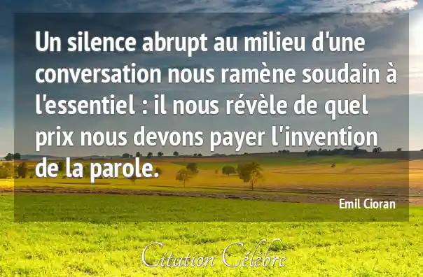 Un silence abrupt au milieu d'une conversation nous ramène soudain à l'essentiel : il nous révèle de quel prix nous devons payer l'invention de la parole.