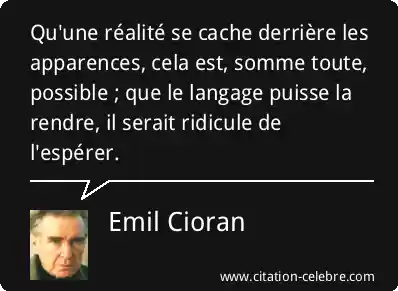Qu'une réalité se cache derrière les apparences, cela est, somme toute, possible ; que le langage puisse la rendre, il serait ridicule de l'espérer.