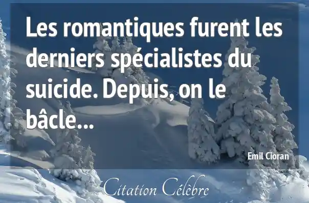 Les romantiques furent les derniers spécialistes du suicide. Depuis, on le bâcle...