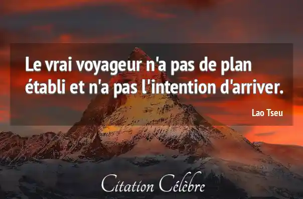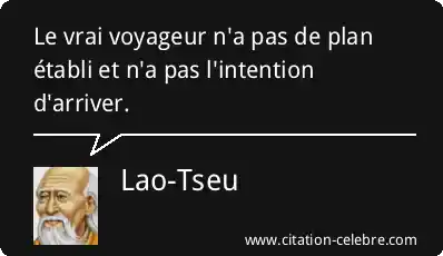 Le vrai voyageur n'a pas de plan établi et n'a pas l'intention d'arriver.