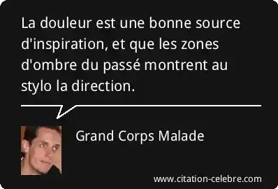 La douleur est une bonne source d'inspiration, et que les zones d'ombre du passé montrent au stylo la direction.