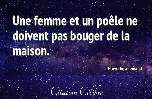 Une femme et un poêle ne doivent pas bouger de la maison.