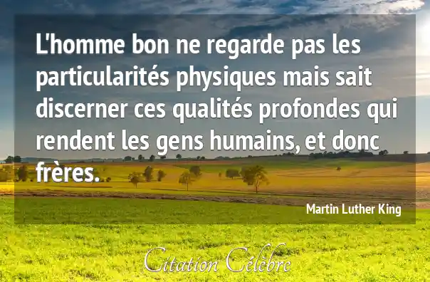 L'homme bon ne regarde pas les particularités physiques mais sait discerner ces qualités profondes qui rendent les gens humains, et donc frères.