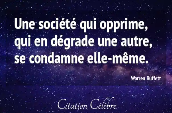 Citation Warren Buffett autre : Une société qui opprime, qui en dégrade une autre, se...