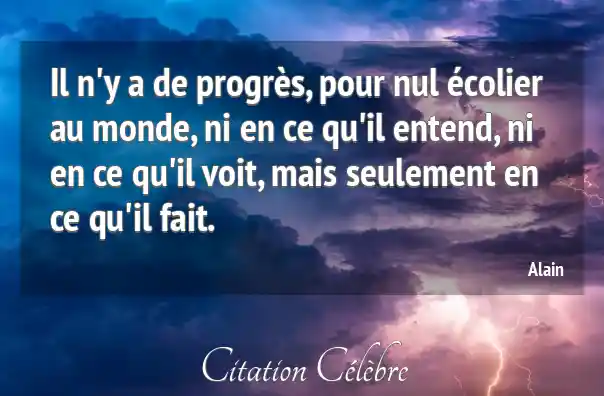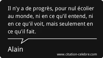 Il n'y a de progrès, pour nul écolier au monde, ni en ce qu'il entend, ni en ce qu'il voit, mais seulement en ce qu'il fait.