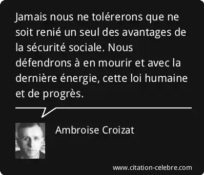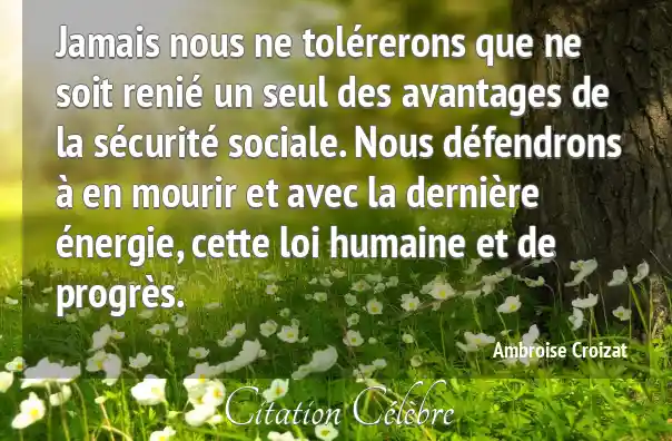 Jamais nous ne tolérerons que ne soit renié un seul des avantages de la sécurité sociale. Nous défendrons à en mourir et avec la dernière énergie, cette loi humaine et de progrès.