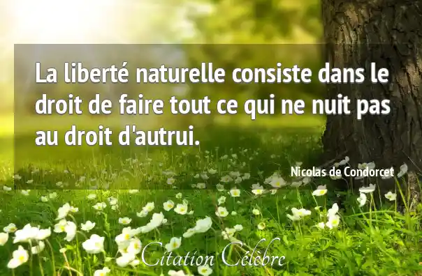 La liberté naturelle consiste dans le droit de faire tout ce qui ne nuit pas au droit d'autrui.