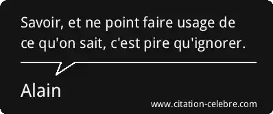 Savoir, et ne point faire usage de ce qu'on sait, c'est pire qu'ignorer.