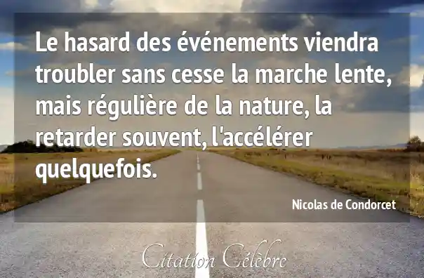 Le hasard des événements viendra troubler sans cesse la marche lente, mais régulière de la nature, la retarder souvent, l'accélérer quelquefois.
