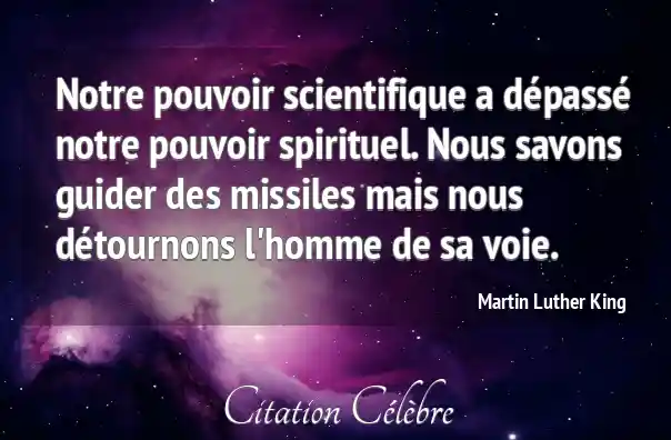 Notre pouvoir scientifique a dépassé notre pouvoir spirituel. Nous savons guider des missiles mais nous détournons l'homme de sa voie.