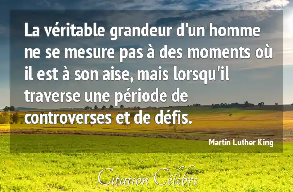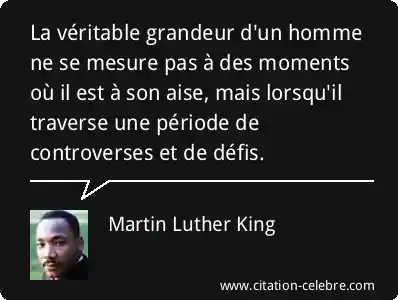 La véritable grandeur d'un homme ne se mesure pas à des moments où il est à son aise, mais lorsqu'il traverse une période de controverses et de défis.