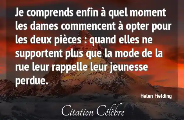 Je comprends enfin à quel moment les dames commencent à opter pour les deux pièces : quand elles ne supportent plus que la mode de la rue leur rappelle leur jeunesse perdue.
