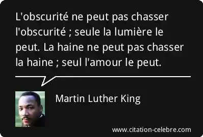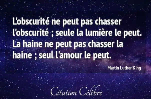 L'obscurité ne peut pas chasser l'obscurité ; seule la lumière le peut. La haine ne peut pas chasser la haine ; seul l'amour le peut.