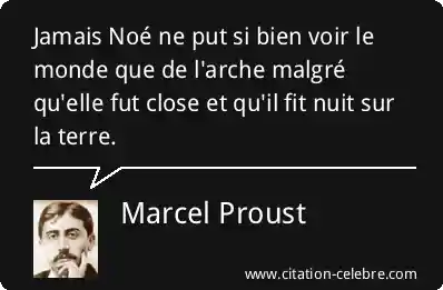 Jamais Noé ne put si bien voir le monde que de l'arche malgré qu'elle fut close et qu'il fit nuit sur la terre.