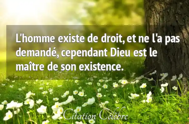 L'homme existe de droit, et ne l'a pas demandé, cependant Dieu est le maître de son existence.