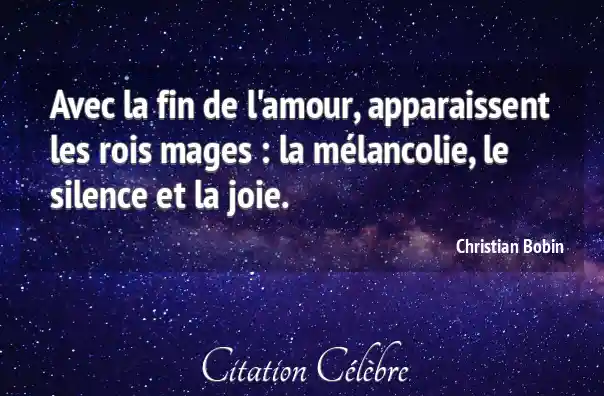 Avec la fin de l'amour, apparaissent les rois mages : la mélancolie, le silence et la joie.