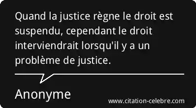 Quand la justice règne le droit est suspendu, cependant le droit interviendrait lorsqu'il y a un problème de justice.