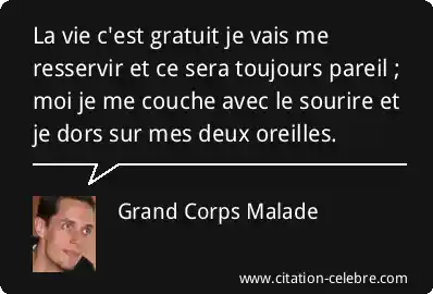 La vie c'est gratuit je vais me resservir et ce sera toujours pareil ; moi je me couche avec le sourire et je dors sur mes deux oreilles.