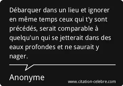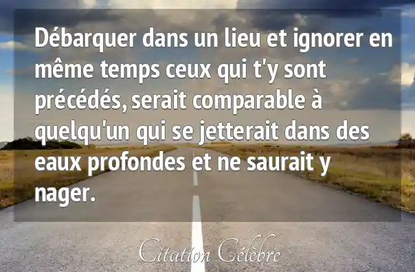 Débarquer dans un lieu et ignorer en même temps ceux qui t'y sont précédés, serait comparable à quelqu'un qui se jetterait dans des eaux profondes et ne saurait y nager.