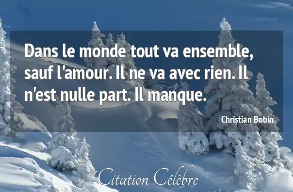 Dans le monde tout va ensemble, sauf l'amour. Il ne va avec rien. Il n'est nulle part. Il manque.