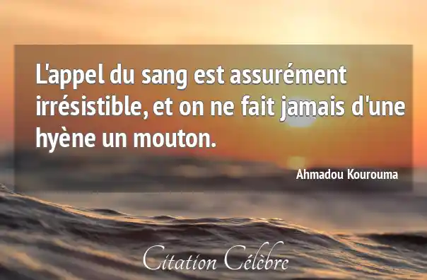 L'appel du sang est assurément irrésistible, et on ne fait jamais d'une hyène un mouton.