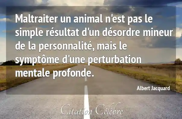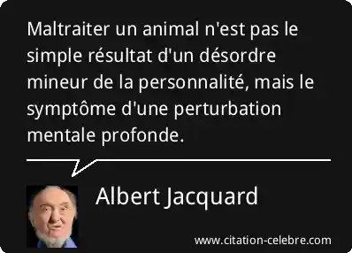 Maltraiter un animal n'est pas le simple résultat d'un désordre mineur de la personnalité, mais le symptôme d'une perturbation mentale profonde.