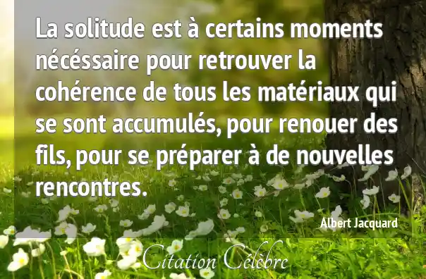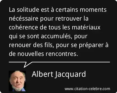 La solitude est à certains moments nécéssaire pour retrouver la cohérence de tous les matériaux qui se sont accumulés, pour renouer des fils, pour se préparer à de nouvelles rencontres.