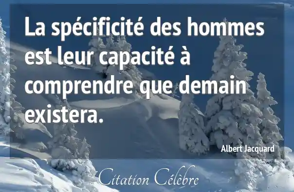 La spécificité des hommes est leur capacité à comprendre que demain existera.