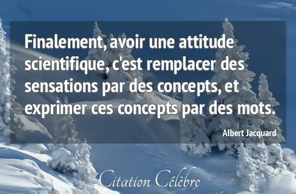Finalement, avoir une attitude scientifique, c'est remplacer des sensations par des concepts, et exprimer ces concepts par des mots.