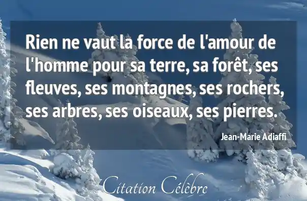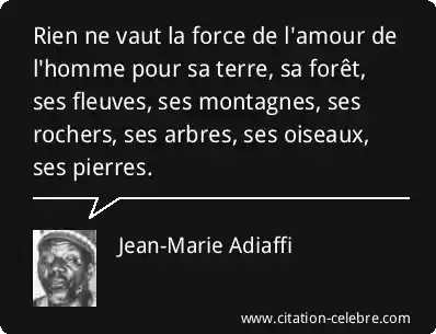 Rien ne vaut la force de l'amour de l'homme pour sa terre, sa forêt, ses fleuves, ses montagnes, ses rochers, ses arbres, ses oiseaux, ses pierres.