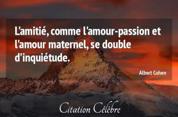 L'amitié, comme l'amour-passion et l'amour maternel, se double d'inquiétude.