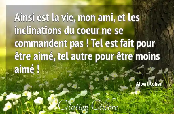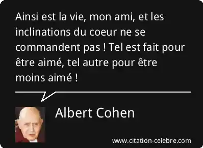 Ainsi est la vie, mon ami, et les inclinations du coeur ne se commandent pas ! Tel est fait pour être aimé, tel autre pour être moins aimé !