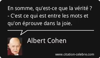En somme, qu'est-ce que la vérité ? - C'est ce qui est entre les mots et qu'on éprouve dans la joie.