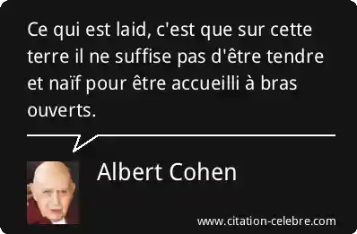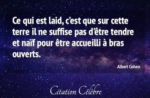Ce qui est laid, c'est que sur cette terre il ne suffise pas d'être tendre et naïf pour être accueilli à bras ouverts.