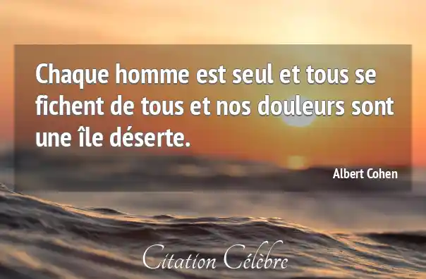 Chaque homme est seul et tous se fichent de tous et nos douleurs sont une île déserte.