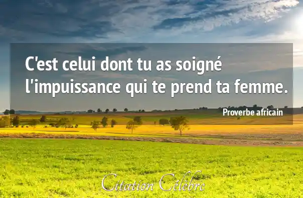 C'est celui dont tu as soigné l'impuissance qui te prend ta femme.