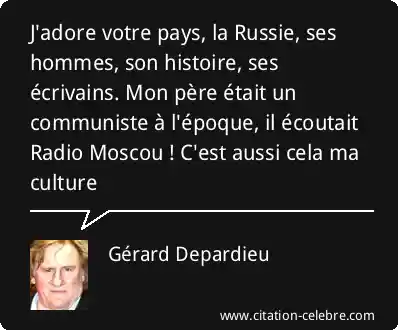 J'adore votre pays, la Russie, ses hommes, son histoire, ses écrivains. Mon père était un communiste à l'époque, il écoutait Radio Moscou ! C'est aussi cela ma culture