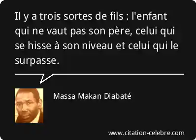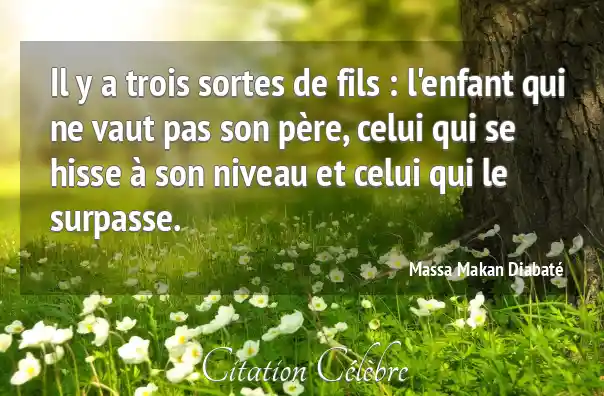 Il y a trois sortes de fils : l'enfant qui ne vaut pas son père, celui qui se hisse à son niveau et celui qui le surpasse.