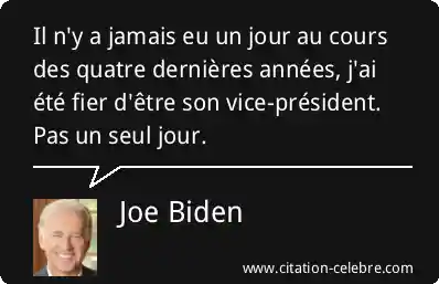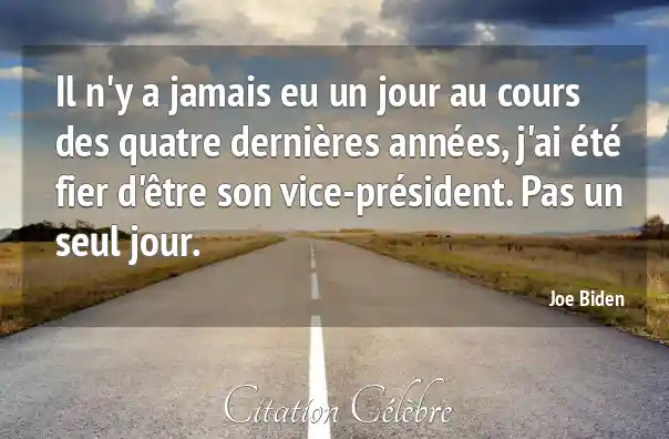 Il n'y a jamais eu un jour au cours des quatre dernières années, j'ai été fier d'être son vice-président. Pas un seul jour.