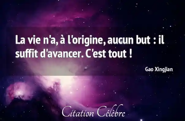 La vie n'a, à l'origine, aucun but : il suffit d'avancer. C'est tout !