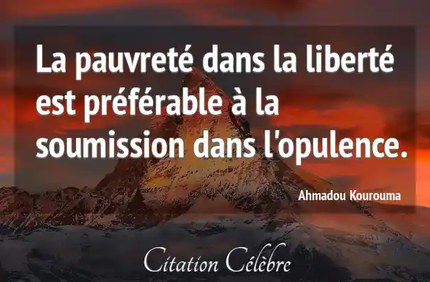 La pauvreté dans la liberté est préférable à la soumission dans l'opulence.