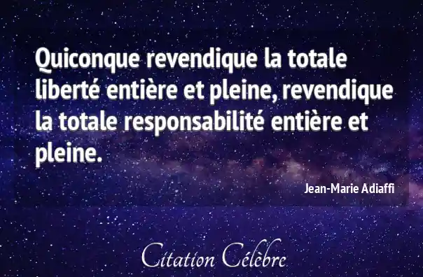Quiconque revendique la totale liberté entière et pleine, revendique la totale responsabilité entière et pleine.
